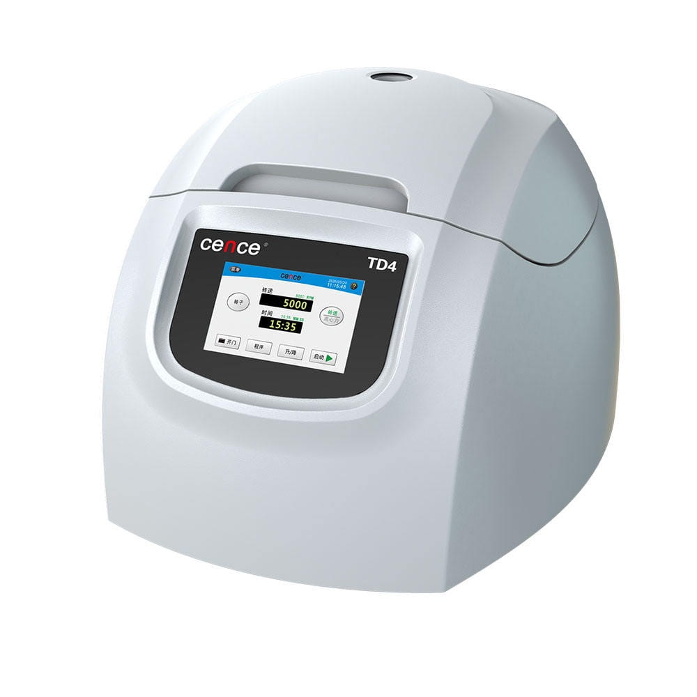 Wirówka stołowa niskoobrotowa Cence TD4, może być szeroko stosowana w małych szpitalach, laboratoriach biochemicznych, gabinetach stomatologicznych oraz salonach kosmetycznych. Dzięki kompaktowym wymiarom i intuicyjnemu ekranowi dotykowemu umożliwia szybkie wirowanie próbek. To niezbędne urządzenie do separacji materiału biologicznego.
